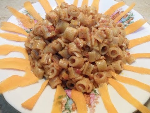 تضاف الطماطم الى البصل وتقلب وتترك لتتسبك ثم تضاف اليها المكرونة وتقلب عليها وتهدئ النار الى ان تسخن وترفع من على النار وتقدم ..